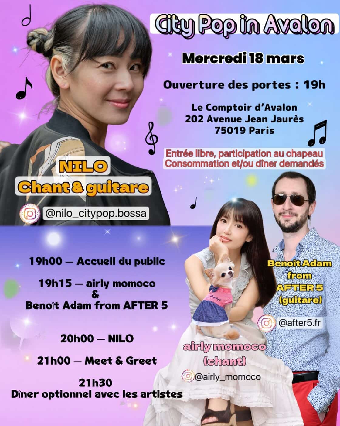21h30-23h00: dîner optionnel avec NILO, Airly Momoco et Benoît